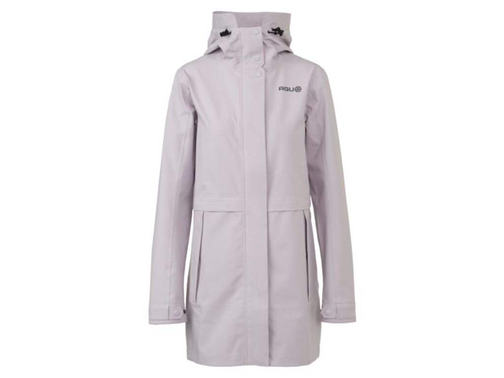 Zeer praktisch voor als het weer wisselvallig is en er kans is op een regenbuitje. D·t is deze Parka Regenjas Urban Outdoor voor dames. Met zijn strakke looks matcht hij met vrijwel elk outfit. De Parka Regenjas Urban Outdoor is gemaakt van 100 procent gerecycled polyester. En dus draagt deze AGUís Greensphere-label. Je maakt een duurzame keuze. Onder de moderne, strakke buitenstof zit het Poray 5-membraan. Bij een doorsnee regenbui kan het water onmogelijk door deze water- en winddichte laag. Hoe hoger het Poray-getal, hoe beter de waterdichtheid. Dankzij het Poray 5-membraan is deze jas ook ademend. Hoe hoger het Poray-getal, hoe beter het ademend vermogen. De jas is afgewerkt met getapete naden en heeft een stormflap die aan de voorzijde over de YKK-rits valt. Dit zorgt voor extra bescherming tegen regen en wind. De Parka Regenjas Urban Outdoor kenmerkt zich door een long fit. Er is voldoende bewegingsvrijheid. Extra gemak: de jas heeft twee zakken aan de buitenkant en ÈÈn binnenin. Achter op de jas zit een lus. Hieraan bevestig je een lampje. Deze lus is uiteraard alleen te gebruiken als je de capuchon op hebt. De vaste capuchon heeft een vizier dat niet in de weg zit als je al rijdend achterom kijkt. Via een elastisch koord met stopper is de capuchon naar wens verstelbaar. De breedte van de mouwen is met twee drukknopen aan te passen. Stap je wel eens op de fiets als er een regenbui is voorspeld? Dan maak je met de Parka Regenjas Urban Outdoor een goede keuze.