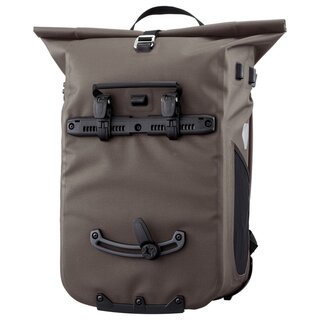 Dankzij een innovatieve constructie kan de waterdichte Vario van ORTLIEB in enkele seconden van een fietstas in een rugzak veranderd worden. Aan de ene kant zit een QL2.1 bevestigingssysteem en aan de andere kant komen ergonomisch gevormde schouderbanden tevoorschijn. Met een flap wordt de kant die niet gebruikt wordt afgedekt. Met de flap verander je deze 2in1 tas niet alleen in een mum van tijd van een fietstas in een rugzak, de flap zorgt ook voor een geïntegreerd vak en een extra buitenvak met rits. Hierin kun je spullen opbergen die je onderweg binnen handbereik wilt hebben. In het gewatteerde vak binnenin de tas kun je veilig je laptop opbergen en dankzij de praktische en beproefde rolsluiting is de inhoud van je tas snel toegankelijk. In het daarvoor bestemde netvak aan de buitenkant van de tas berg je eenvoudig een drinkfles op en de reflectors aan de zijkant en het reflecterend garen in de schouderbanden zorgen voor meer zichtbaarheid in het verkeer. Uiteraard is de Vario waterdicht en duurzaam geproduceerd in Duitsland.